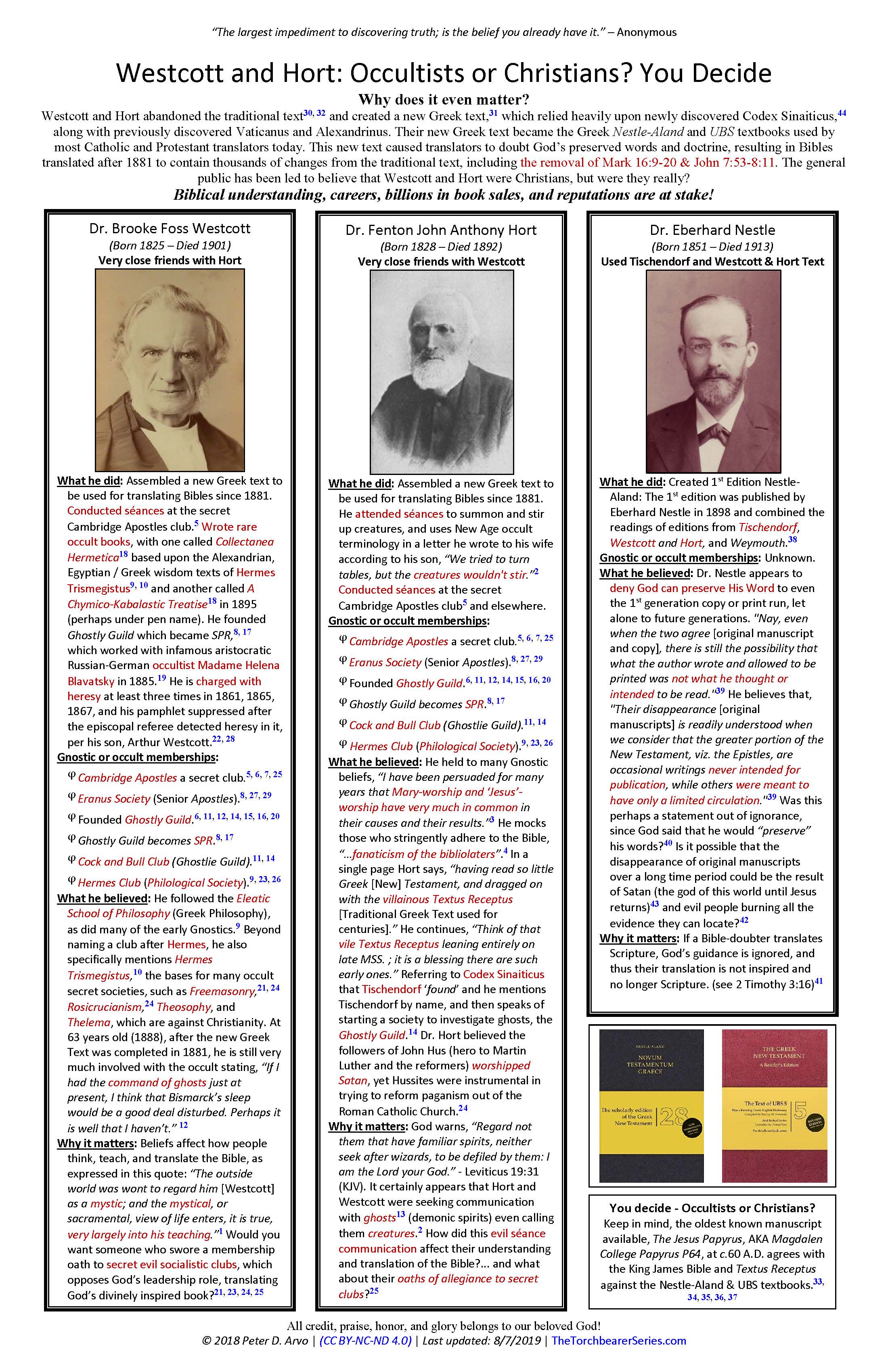 Westcott and Hort - Occultists or Christians - You Decide 8.5x11